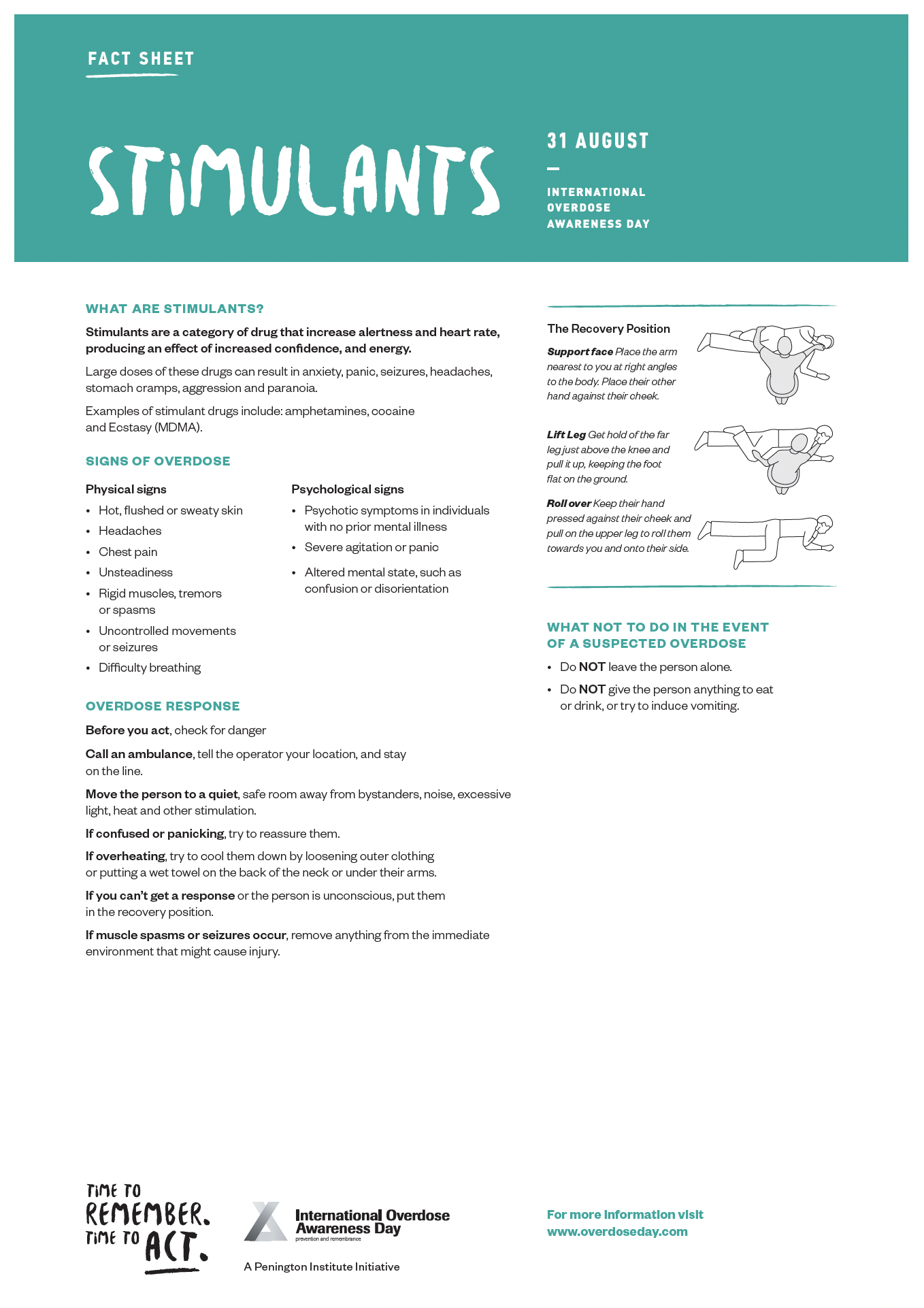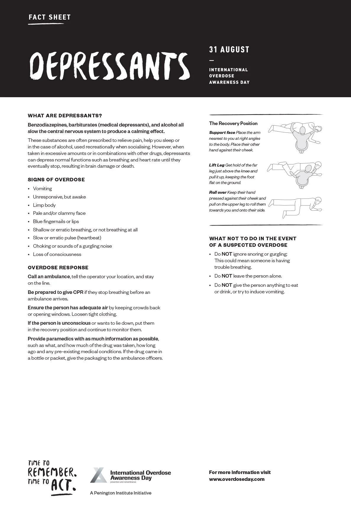 The fact sheets below, created by the Penington Institute, provide information about how to respond to an overdose by drug type. Please feel free to download and share these documents.
